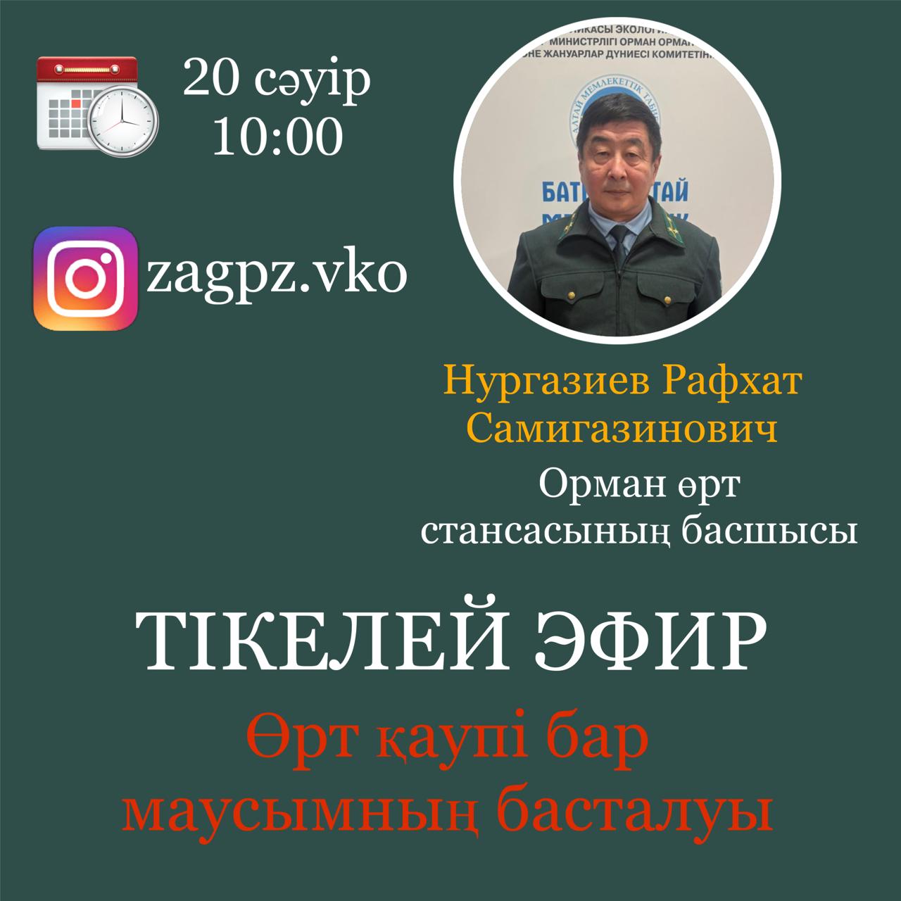 Құрметті оқырмандар! 20 сәуір күні сағат 10.00 zagpz.vko инстаграм парақшасында тікелей эфир өтеді.