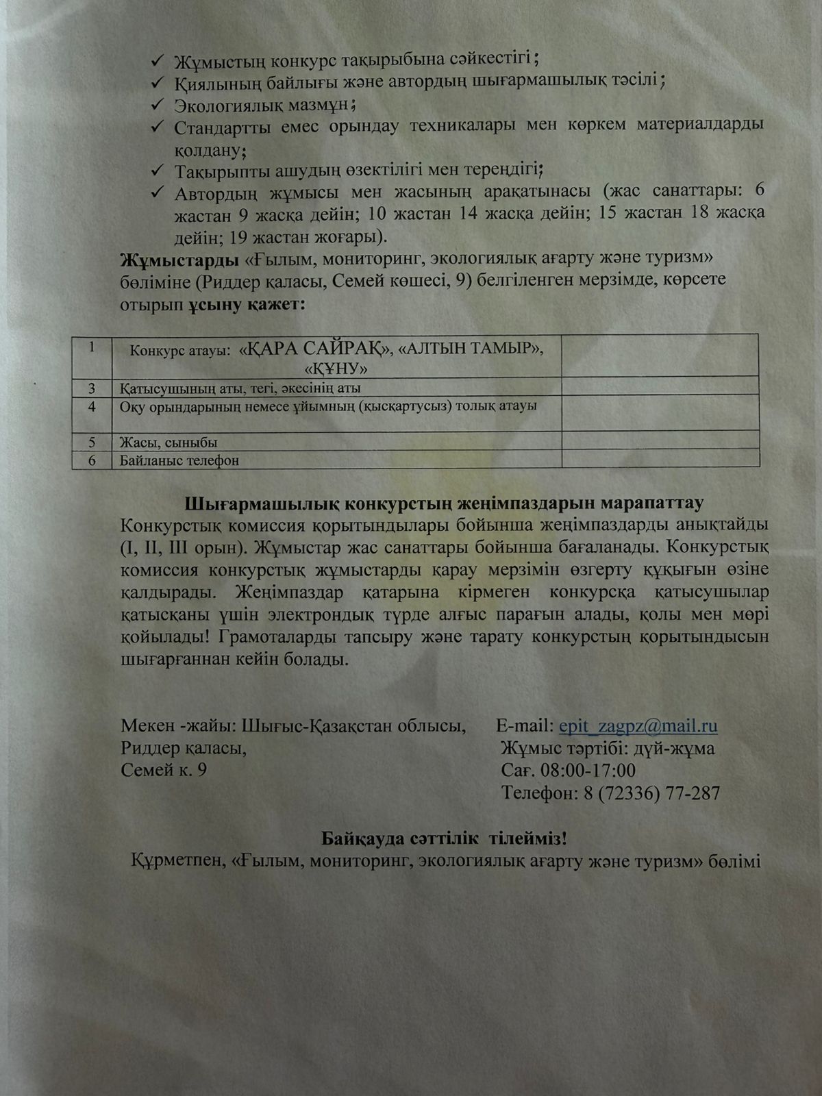 2026 жылғы 27 наурыз. «Парктер шеруі 2026» табиғатты қорғау акциясы аясында өткізілетін шығармашылық байқауларға қатысуға шақырамыз!