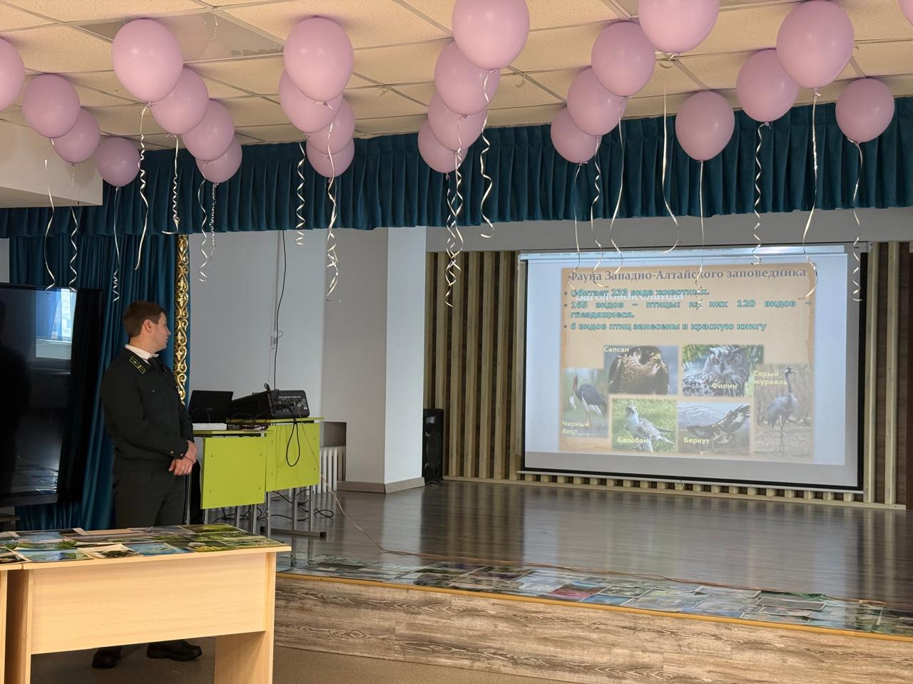 «№ 11 жалпы білім беретін мектеп» КММ-де Батыс -Алтай табиғи қорығының биоалуандығын сақтауға арналған танымдық дәріс өтті. Мамандар қорық аумақтарының жануарлар мен өсімдіктердің сирек кездесетін түрлерін қорғауда неге маңызды рөл атқаратынын, қандай табиғи кешендер ерекше қорғауды қажет ететінін және әрбір адамның табиғатты сақтауға қалай үлес қоса алатынын айтып берді.